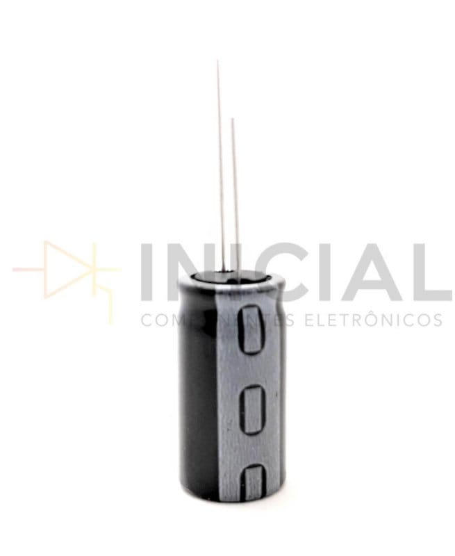 Capacitor Eletrolítico tem a função de armazenar uma pequena quantidade de energia elétrica para prover picos ou variações de energia. O mesmo também serve para filtrar a corrente elétrica evitando ruído. Por ele ser polarizado, a grande maioria tem marcação do positivo e negativo, caso encontre algum sem a marcação, o terminal maior é o positivo e o menor o negativo. Sendo radial seus terminais se encontram em uma das bases do componente (vertical).CAPACITOR RADIAL 220UF x 16V