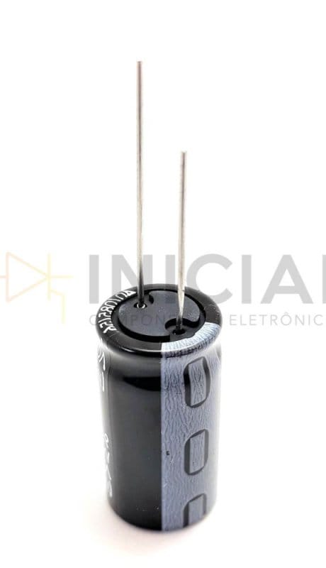 O capacitor 47uf x 100V possui capacitância de 47uf e voltagem máxima de 100V