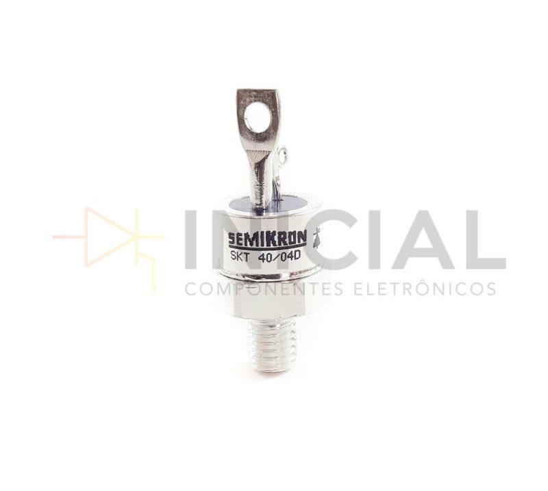 O SKT 240/14E é um componente eletronico da família dos semicondutores, é um tiristor parafuso para correntes e potências elevadas. Além da condução através do gate, o tiristor também pode entrar em estado de condução se a tensão aplicada for superior (a um certo nível), entre o anodo e o catodo – ressaltamos que a corrente não pode ser controlada através do gate, sendo o gate responsável somente pelo disparo do tiristor. A aplicação tem a finalidade de retificar controladamente as tensões alternadas, podendo variar o ângulo de condução (controle de fase).Tiristor SKT 240/14E possui tensão de 1400VAtenção: a inversão indevida de polaridade ou das condições de disparo podem levar à queima do componente.SKT 240/14E